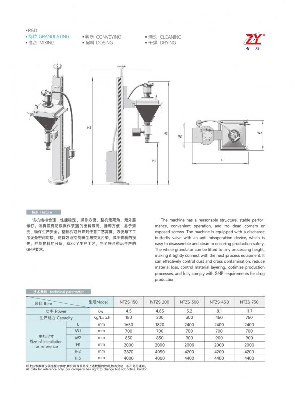 This machine is mainly used for the transfer and feeding of solid materials in the pharmaceutical industry. lt can be used in conjunction with fluid bed granulators and fluid bed dryers. The agglomerated granules after granulation process could get uniform granules through by vacuum feeding and milling process.It is widely used in industries such as pharmaceuticals,chemicals, and food.